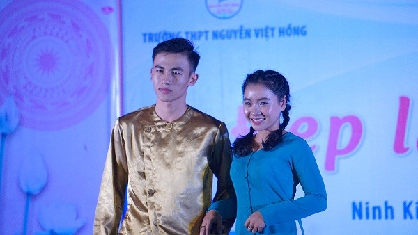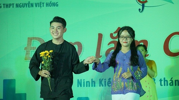 Học sinh THPT Nguyễn Việt Hồng duyên dáng trrong tiết mục thời trang